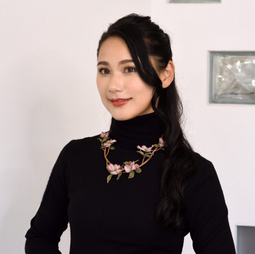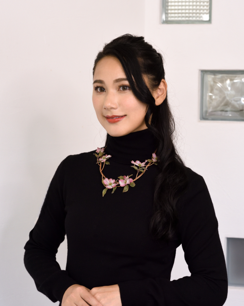 木に咲いている形そのままに、シリカジュール技法によるリアルな造形美をしなやかな革紐にまとわせました。